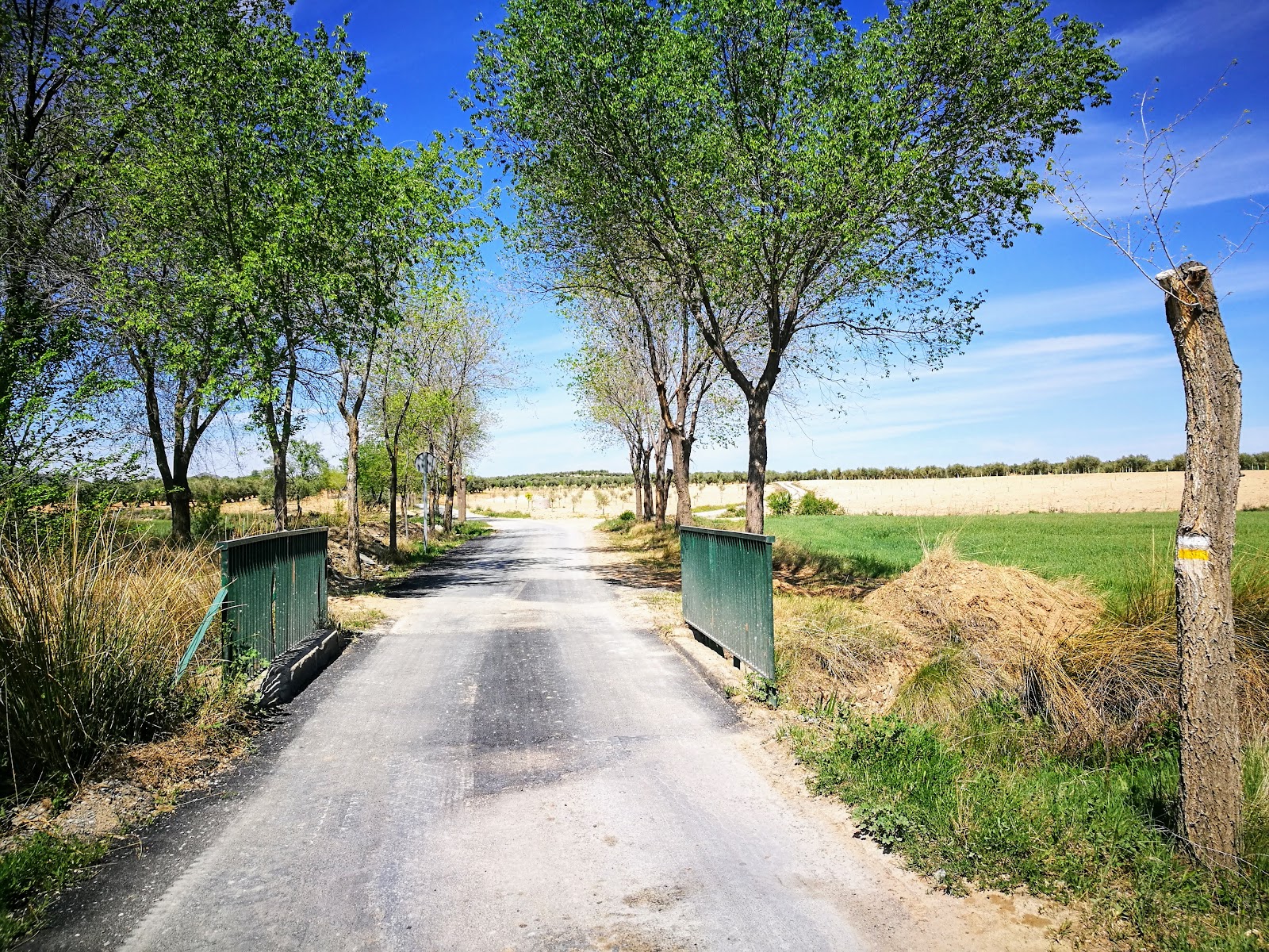 En un cruce abandonaremos la compañía del Camino de Santiago por la derecha. El sendero nos va llevar de nuevo a encontrarnos con la carretera CM-42, en esta ocasión la vamos a superar por un puente.