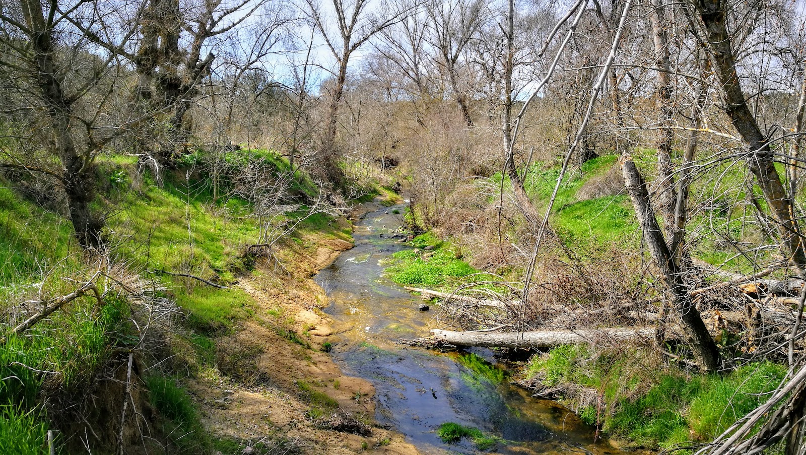 Al otro lado del puente tenemos una valla que rodea lo que antes fue Perales de Milla. Hoy ya dejo de ser un poblado y se convirtió en una finca privada. Bajamos entre el arroyo Palomero y la valla de la finca hasta llegar junto al Río Perales.