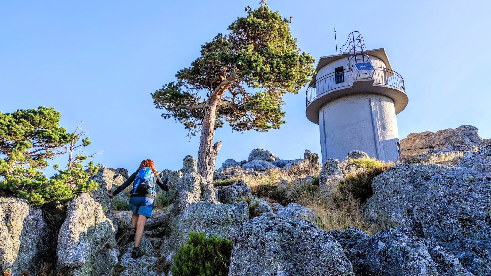 Junto a nosotros tenemos a Peña Aguda a 1883 metros de altura que es una verdadera atalaya natural, por lo cual decidimos antes de comenzar el propio sendero balizado subir hasta ella para poder hacernos una idea del recorrido y la zona que vamos a visitar. La vereda que asciende es cómoda y en un momento te deja en lo que a mi me parecía un faro. Desde aquí tenemos una perspectiva de todas las lagunas y las sierras que nos rodean. Si te fijas mirando al Este podrás ver el altivo Pico de Urbión.