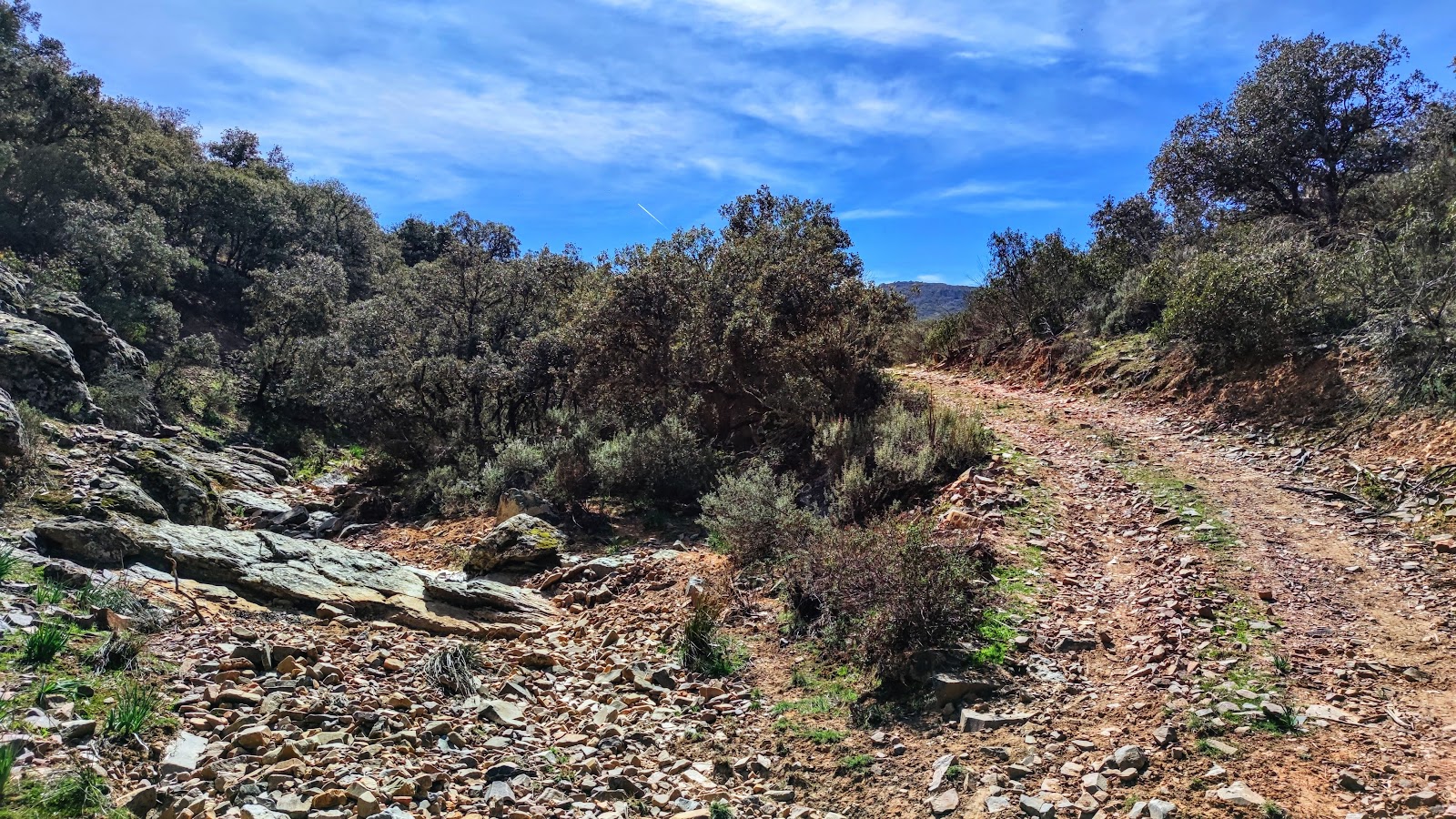 Prosigo ahora por una senda mucho más amplia y mas cómoda. Vamos a cierta altura sobre el nuevo arroyo llamado el Tamujoso que vadearemos un par de veces sin problemas.