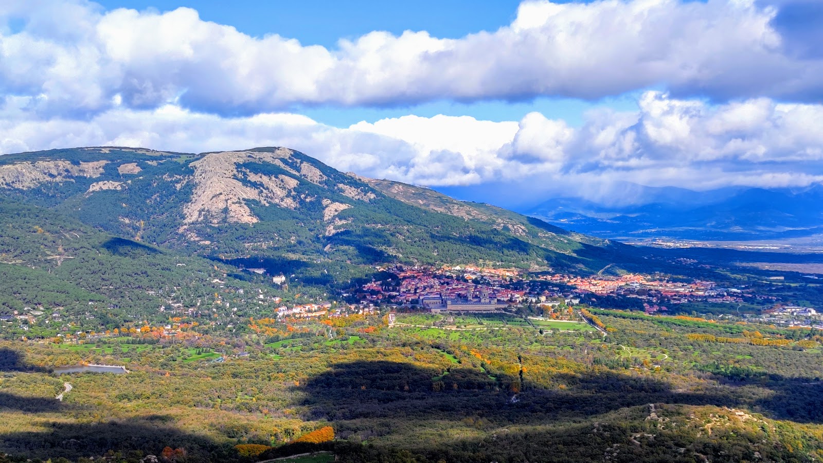 Llegamos a un paso de una portilla, justo en este lugar tenemos un bonito mirador natural. Ante nosotros tenemos el Monasterio del Escorial a los pies del Monte de Abantos.